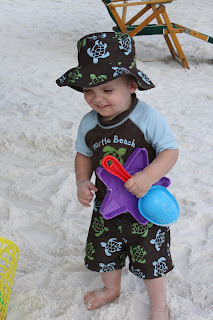 He wasn't afraid of the ocean AT ALL. In fact, we couldn't keep him out. He kept trying to put his face under. One time he got away from my dad and the wave swept him out and he rolled under the water a couple of times. We all freaked out hoping he was ok. He didn't cry. Nope. He laughed and wanted to do it again. I think this one is going to be trouble. Ha!
